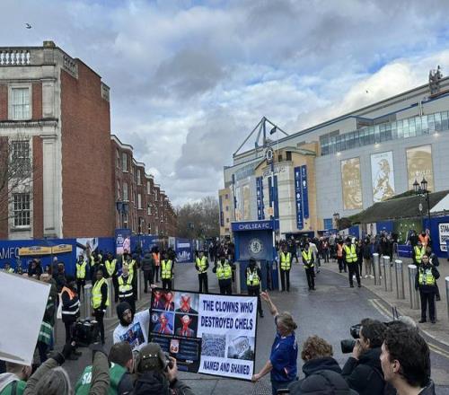 北京时间1月17日23点,英超第22轮,切尔西将坐镇主场对阵布伦特福德。赛前,部分切尔西球迷在主场外拉起横幅对俱乐部所有者BlueCo集团进行抗议。